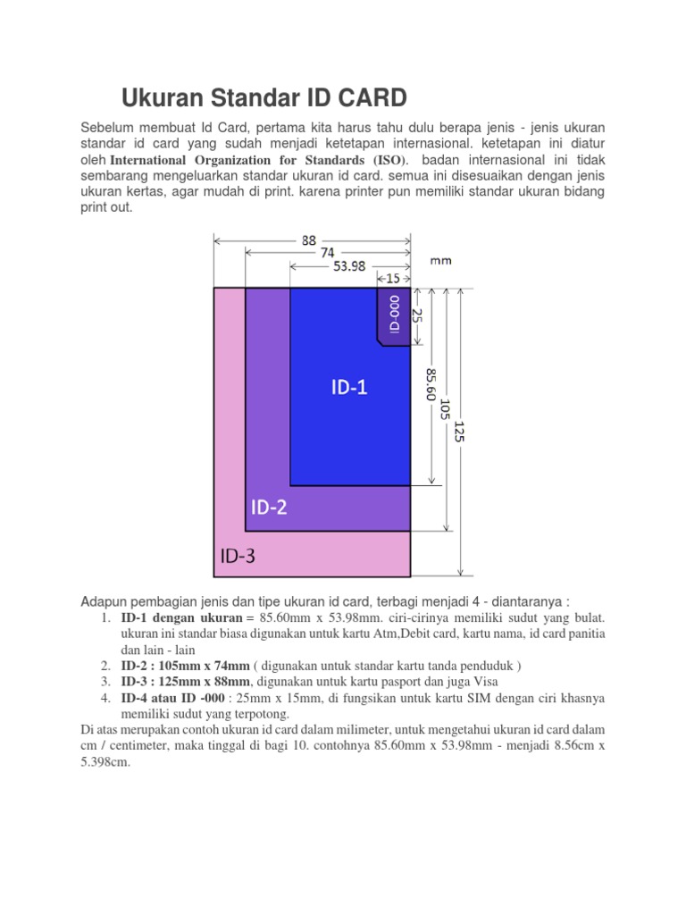 Demikianlah artikel mengenai daftar isi. Fungsi id card ini umumnya digunakan untuk chip, kartu seluler, maupun identitas lainnya yang berbasis digital. Tak perlu pusing, canva dirancang untuk memiliki ukuran standar id card sekaligus fleksibilitas untuk mengubah ukuran sesuai keinginan anda. Ini dia 6 ukuran id card sesuai standar yang bisa dipilih. Bila berbicara mengenai ukuran atau dimensi id card, maka di indonesia sendiri sudah ada standar baku sebagai tolok ukur.